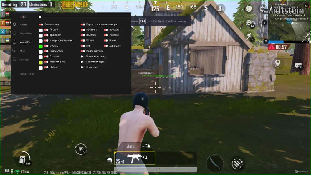 Экстернал чит для PUBG Mobile, предназначенный для использования на эмуляторе Gameloop.